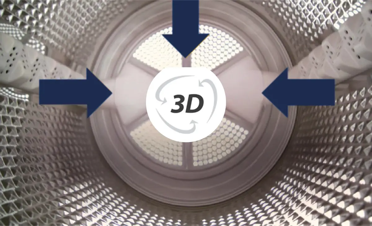 Die 3D-Trocknungstechnologie sorgt durch eine einzigartige, dreidimensionale Luftzirkulation dafür, dass jeder Winkel der Trommel erreicht wird.